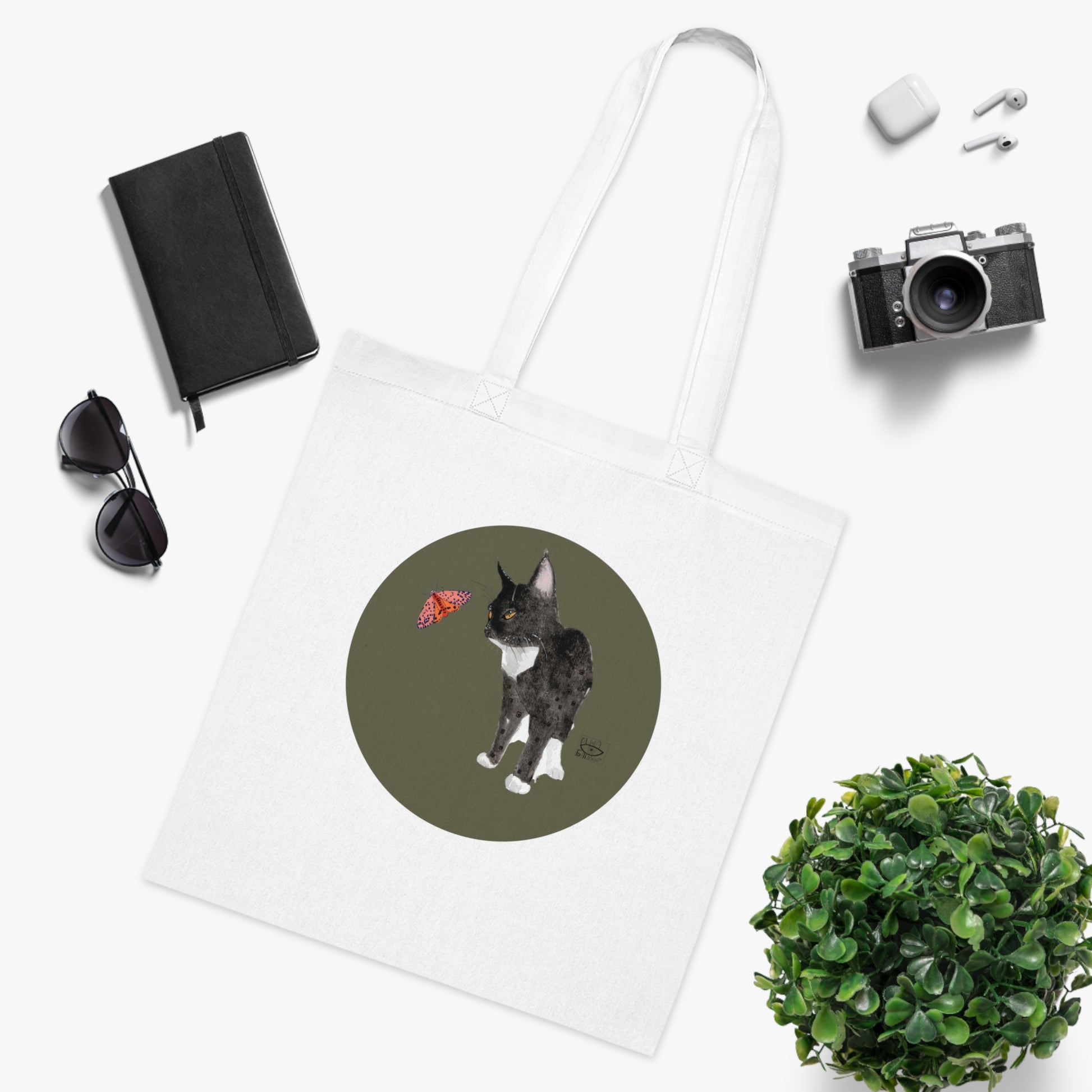 Cat and Butterfly Cotton Tote Bag, Eco-Friendly Shopping Tote, Cute Pet Lover Gift, Animal Lover Tote, Reusable Grocery Bag