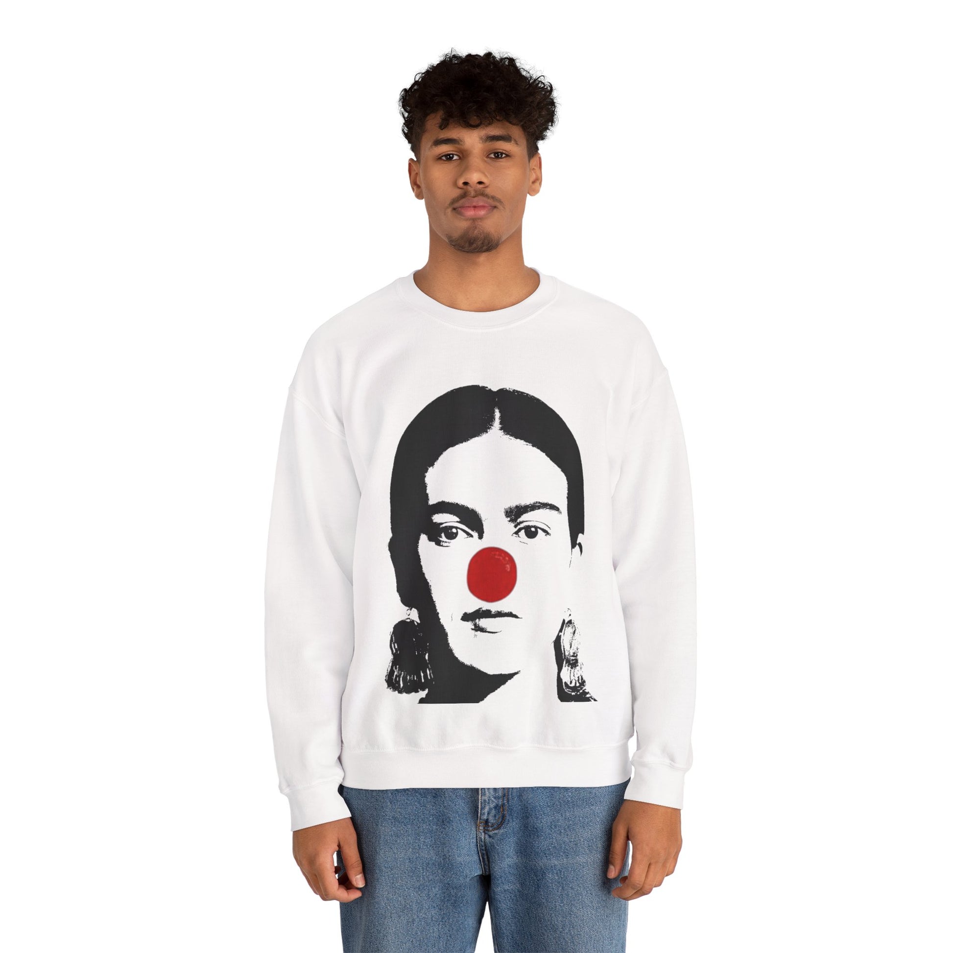 Frida Kahlo Clown Crewneck Sweatshirt, Holiday Sweatshirt, Unisex Sweatshirt, Gift for Art Lovers, Christmas Apparel, Cozy Fashion