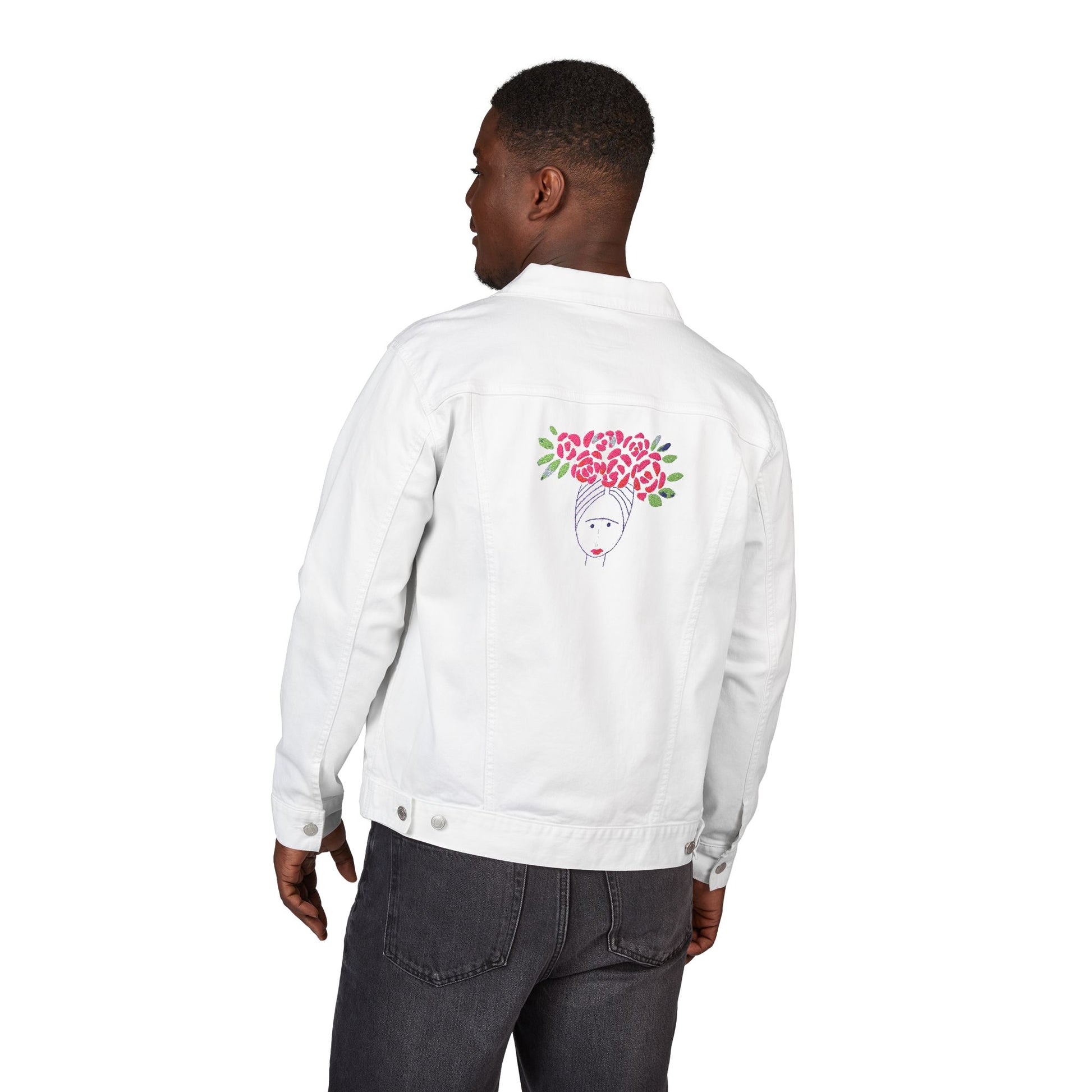 Elevate your wardrobe with this stylish Unisex Denim Jacket, featuring unique embroidery that adds a touch of personality to your outfit. Crafted from a blend of soft ringspun cotton and polyester, this jacket offers both comfort and durability. It’s perfect for layering in the cooler months or dressing up any casual look. Whether you're heading to a festival, enjoying a night out, or simply running errands, this jacket makes a statement. It’s ideal for fashion-forward individuals seeking a versatile piece that seamlessly fits into their everyday life. Great for gifting during holidays like birthdays, or special occasions such as anniversaries and graduations, this jacket is suitable for anyone who appreciates unique style and quality craftsmanship.