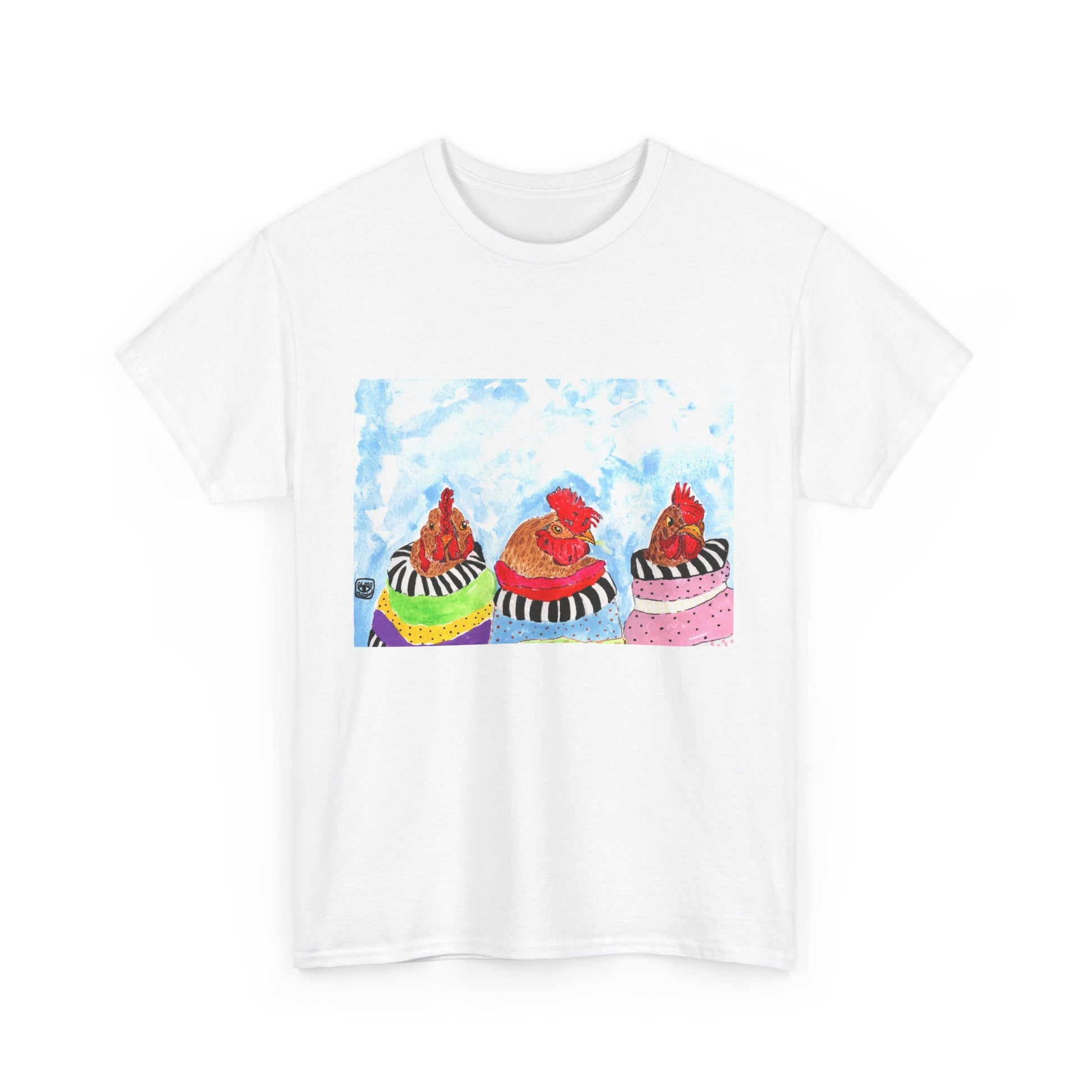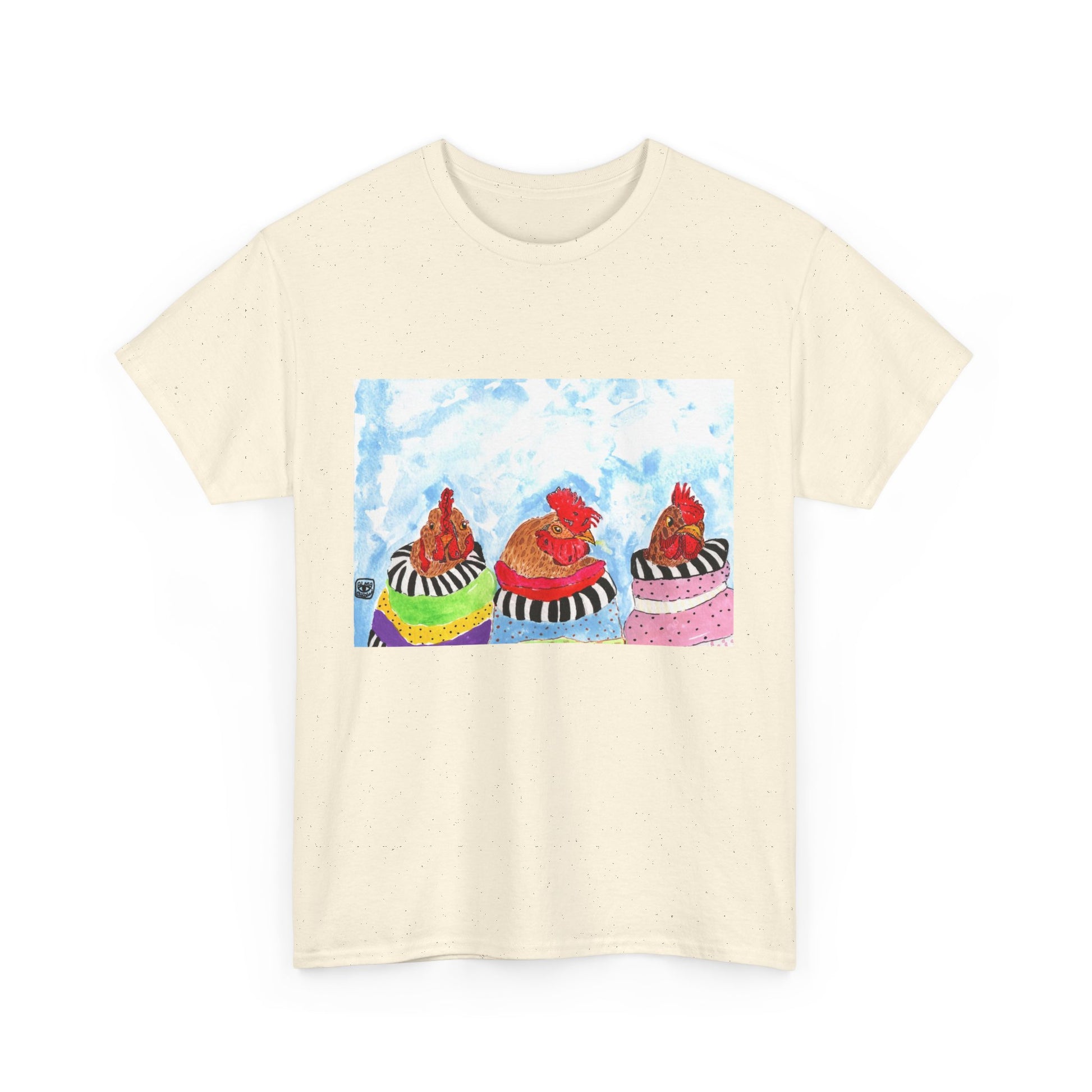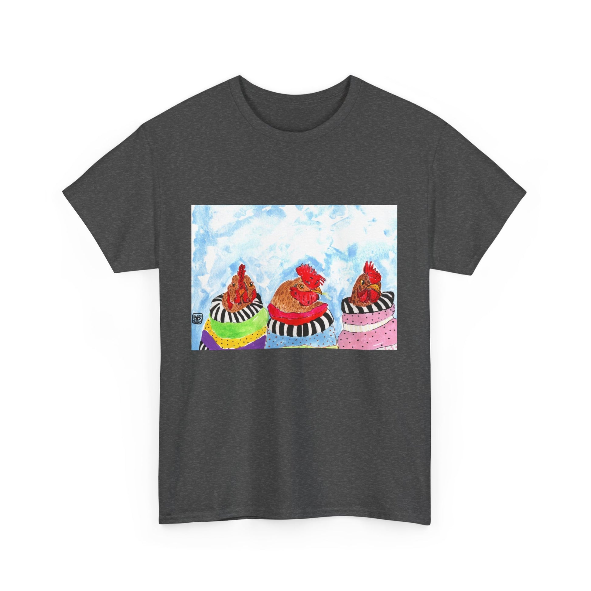 Happy Chickens Unisex Heavy Cotton Tee - Unique Graphic Design for Creative Souls