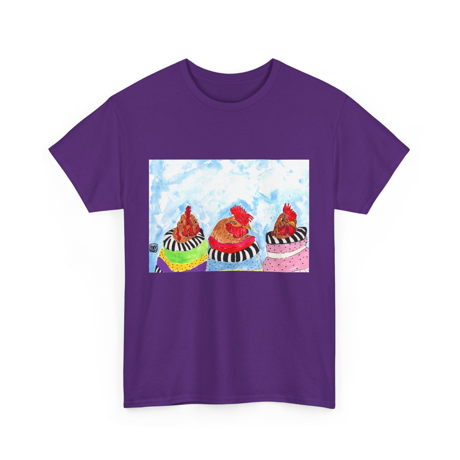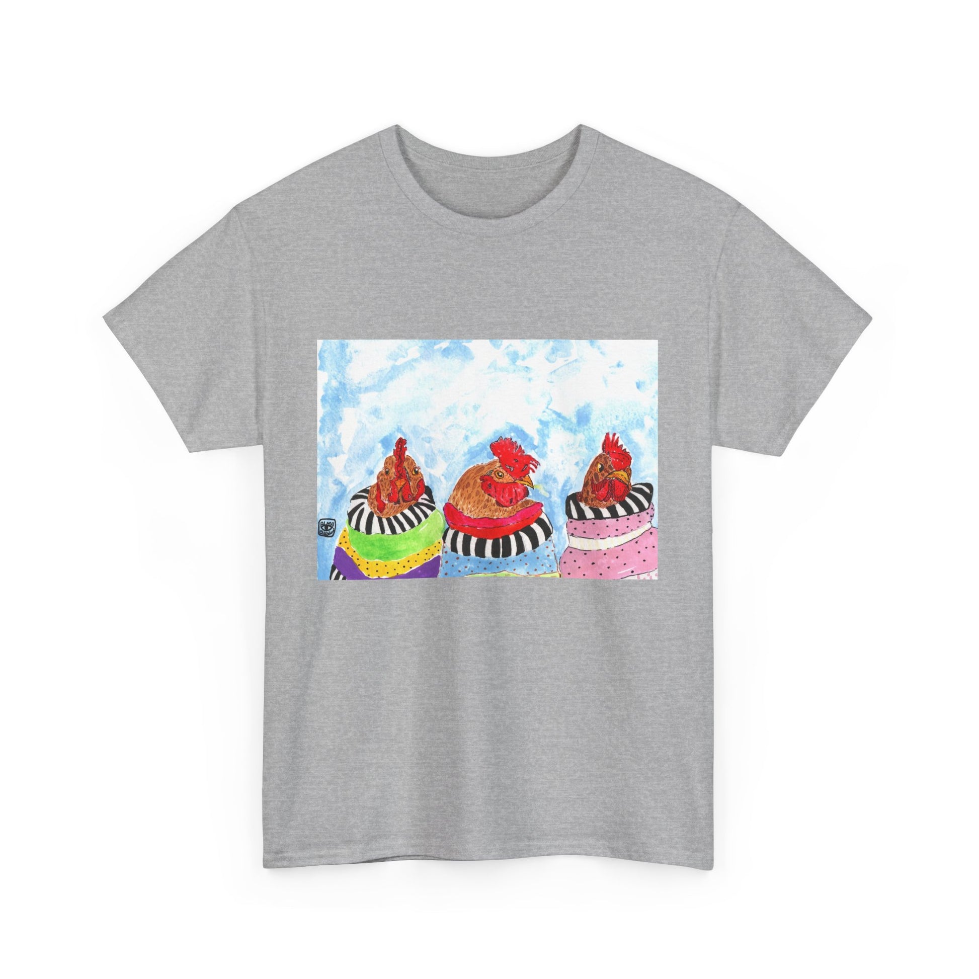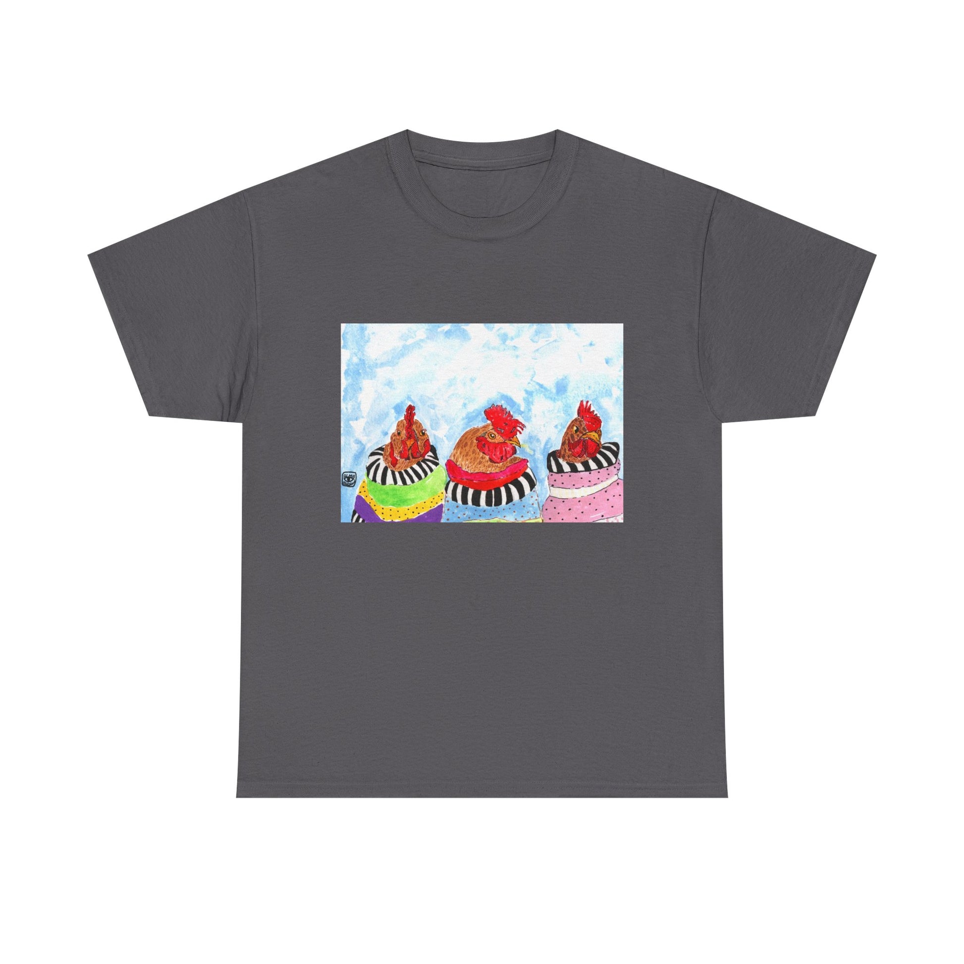 Happy Chickens Unisex Heavy Cotton Tee - Unique Graphic Design for Creative Souls
