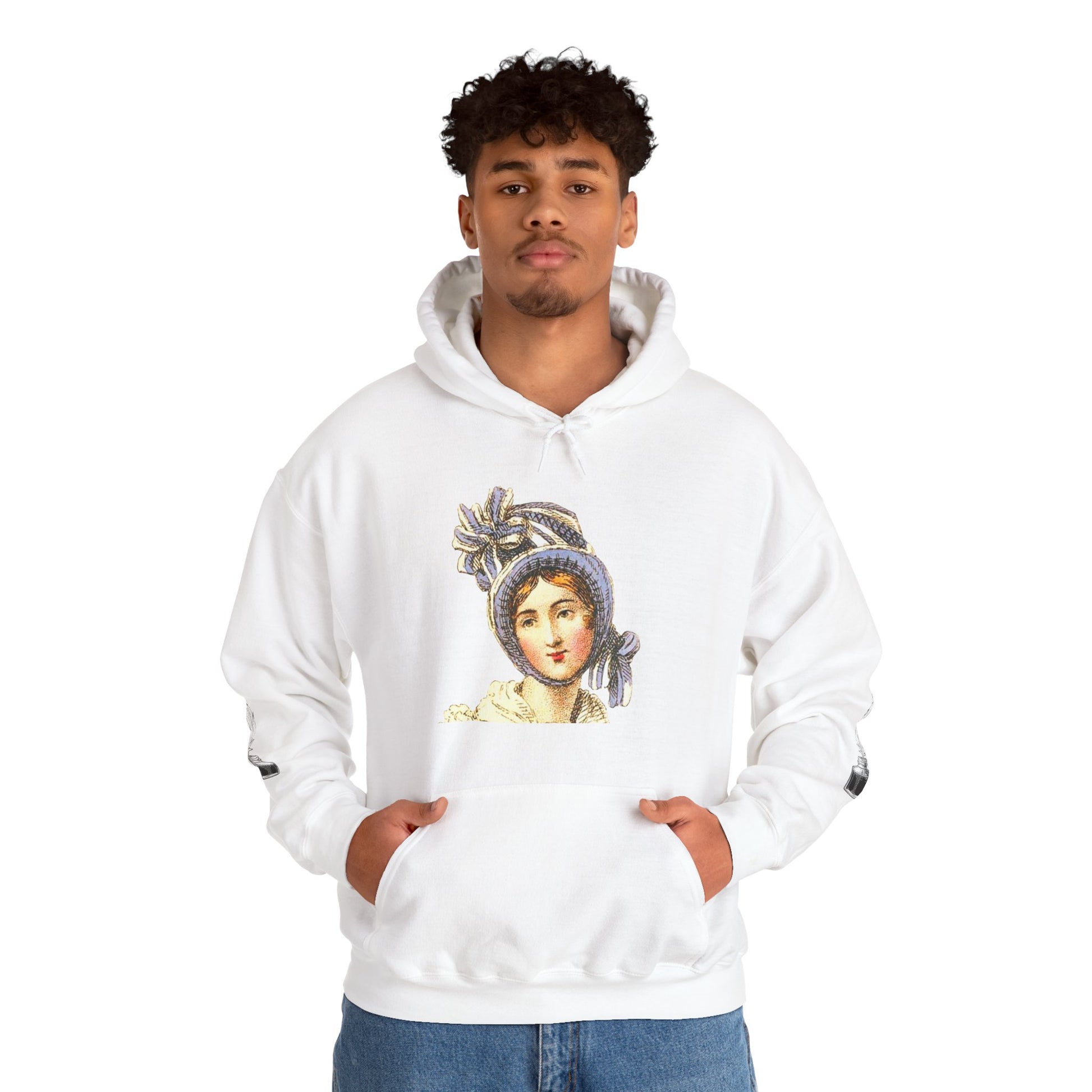 Jane Austen Artistic Hooded Sweatshirt, Cozy Layering, Women’s Fashion, Unique Gift, Everyday Wear, Art-Inspired Attire