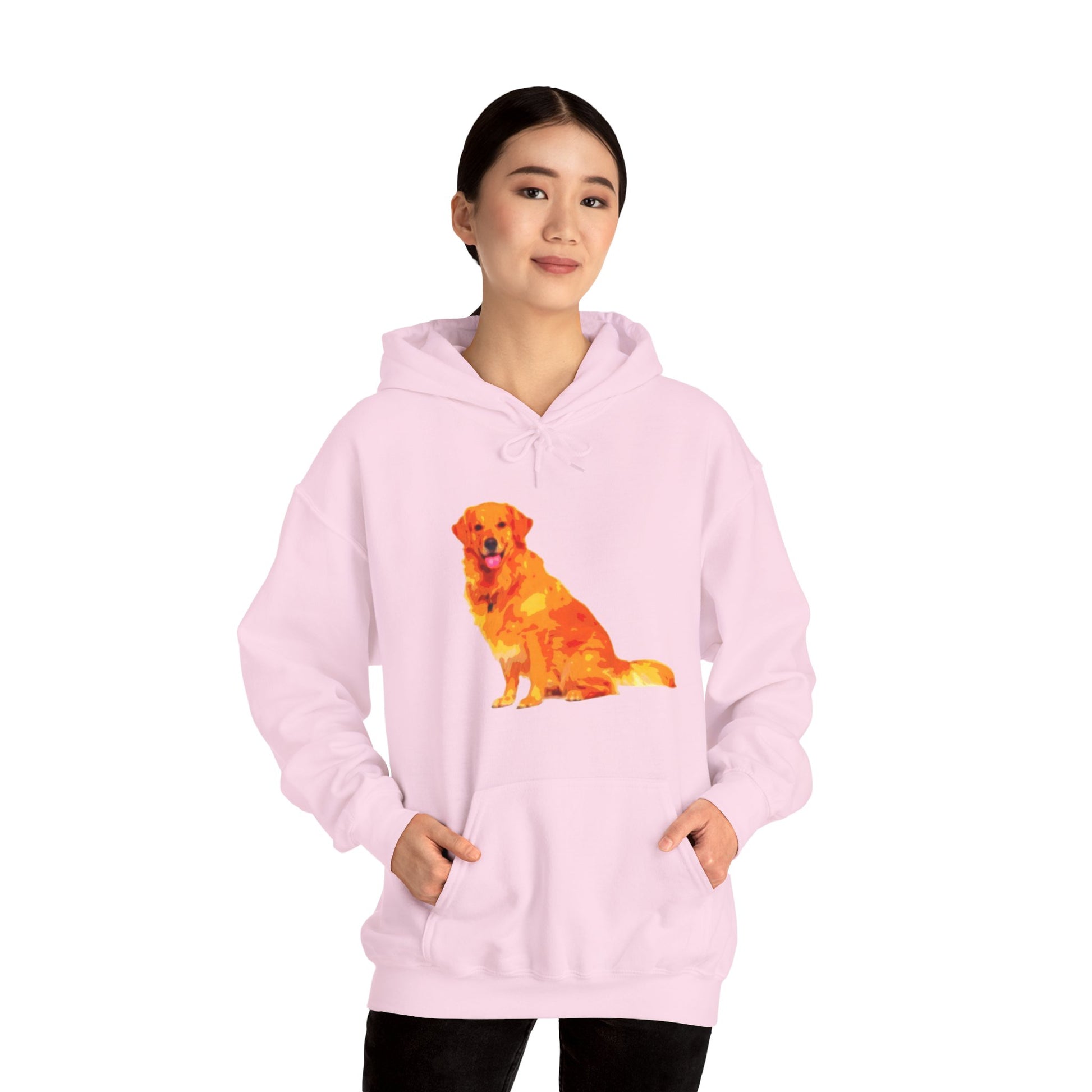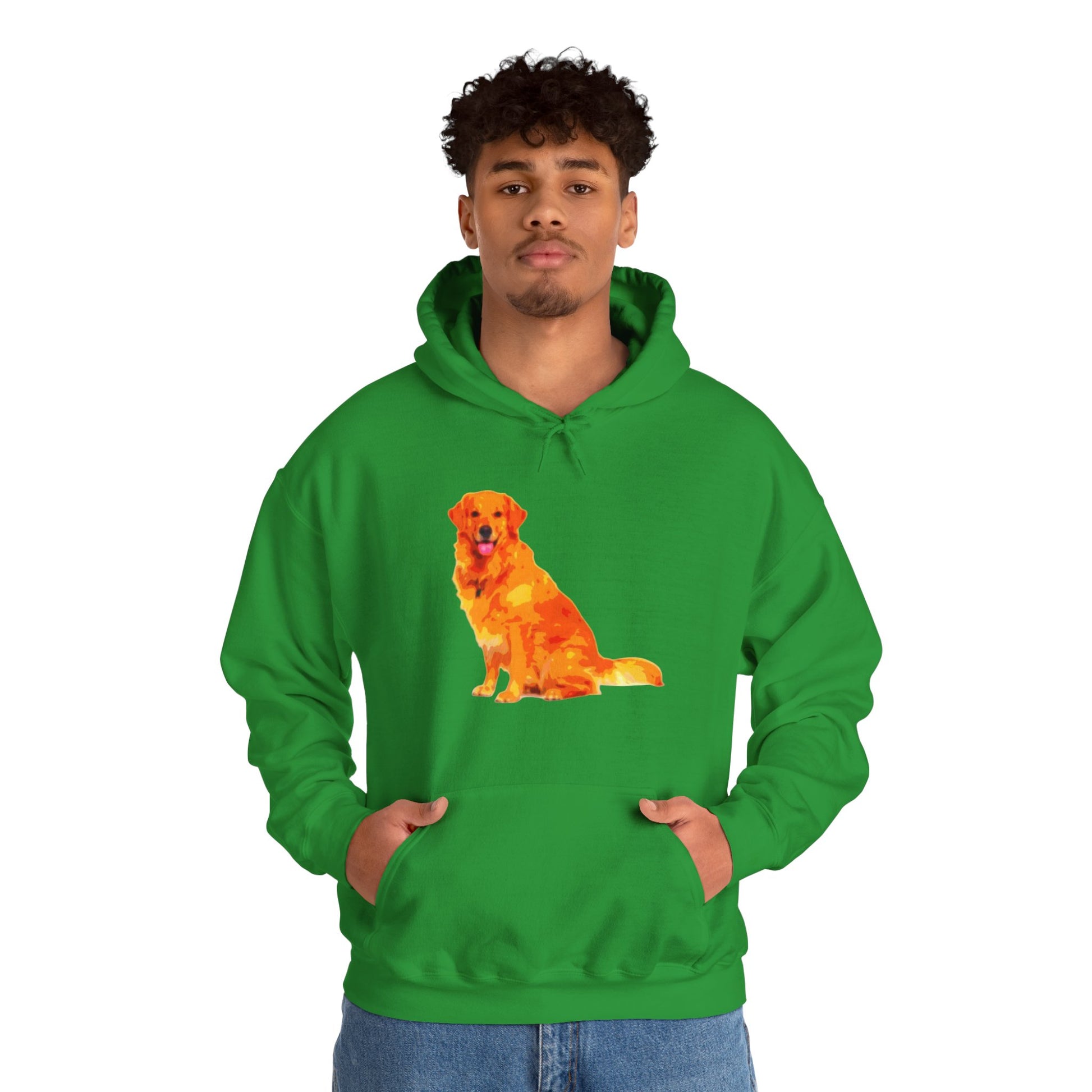 Embrace warmth and style with this cozy unisex hoodie featuring a vibrant, artful depiction of a golden retriever. Perfect for dog lovers, this hoodie adds a splash of personality to your wardrobe while keeping you snug during cooler weather. Its spacious kangaroo pocket is ideal for warming your hands or storing essentials, making it perfect for casual outings, walks in the park, or cozy nights in. With its adjustable drawstring hood and medium-heavy fabric, this hoodie offers a comfortable fit for any occasion—be it casual hangouts, dog park visits, or chilly holiday gatherings. Great for birthdays, holidays like Christmas, or just as a treat for yourself or a fellow dog enthusiast, this hoodie brings a playful vibe to any outfit!